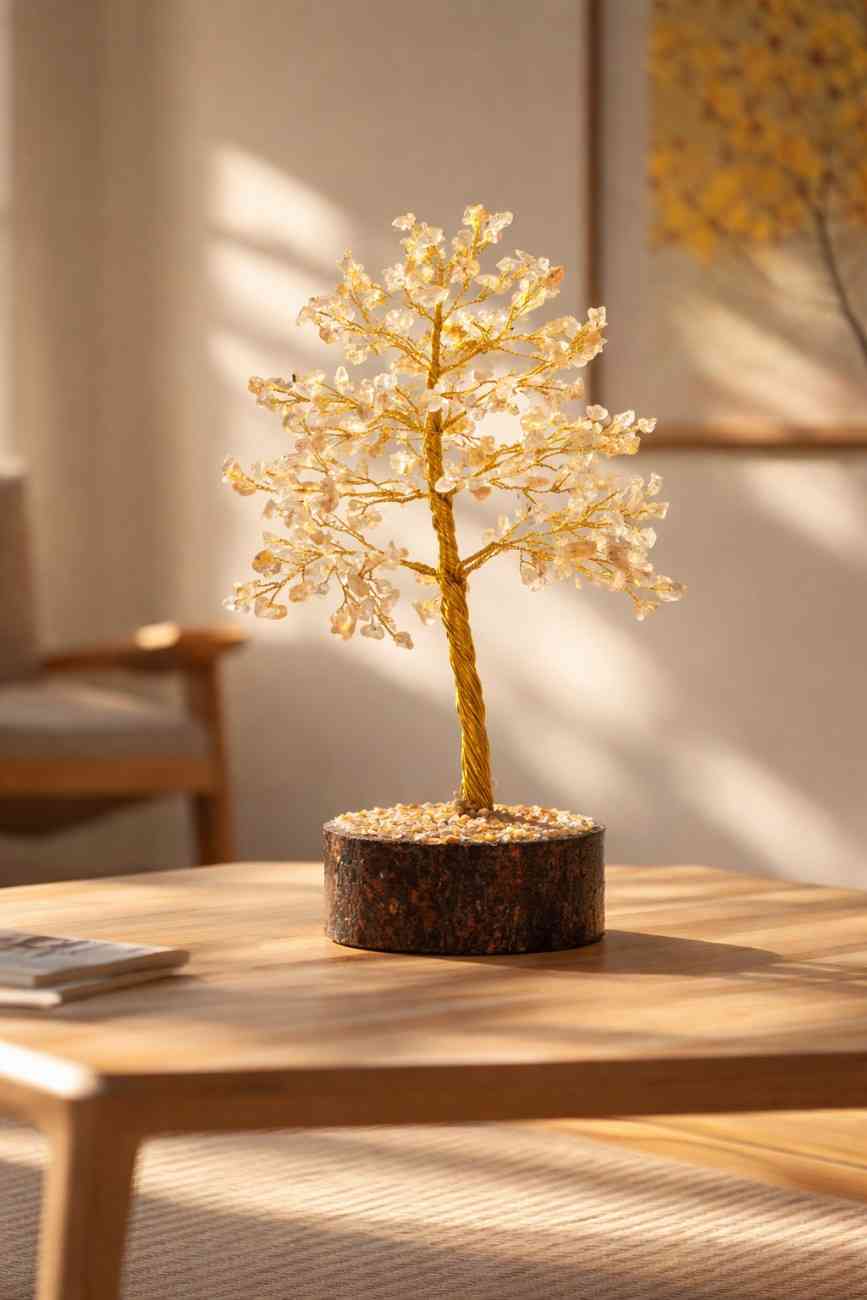 Amantra Citrine Tree is a powerful symbol of abundance, creativity, and positivity. Known as the Merchants Stone, it attracts wealth and prosperity into your life. Its radiant energy clears the mind, boosts motivation, and promotes emotional balance.Whether placed in your living room or office, it encourages positive thoughts and invites success. The Citrine Tree is ideal for anyone seeking mental clarity, creativity, and financial growth.Place it in your home, mandir, workspace or any place to invite positive energy - it also makes a meaningful gift for loved ones.